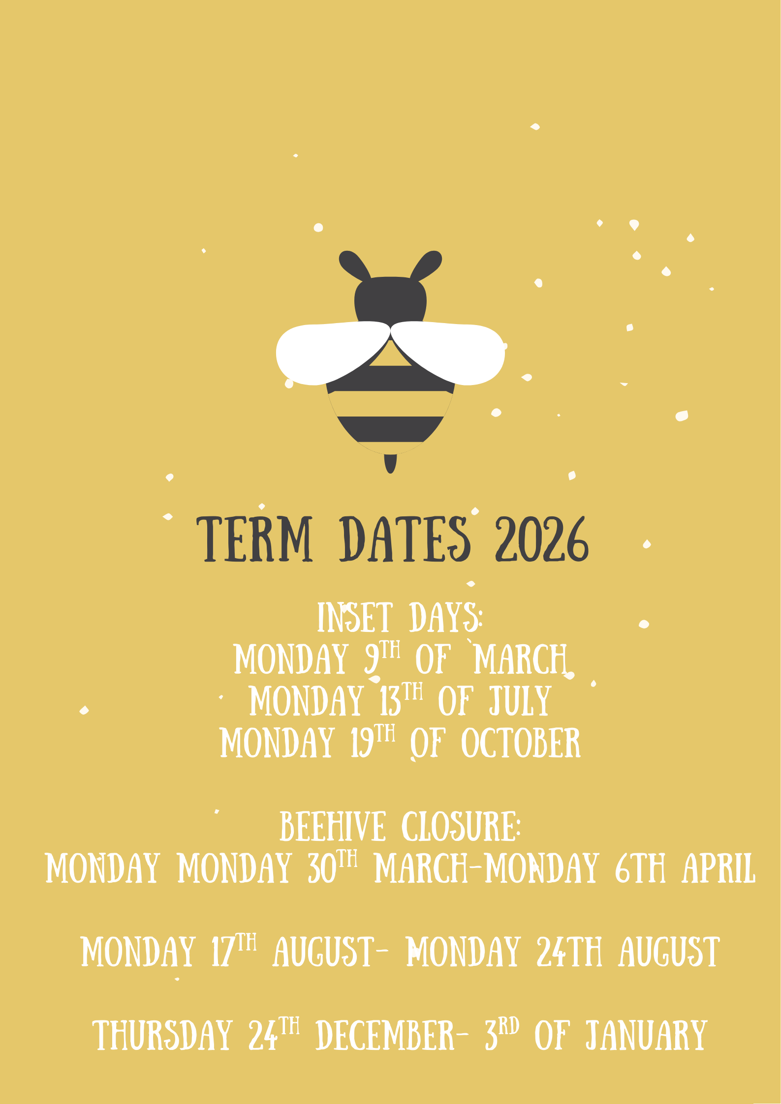 Beehive is open 49 weeks in a year. Please see term dates attached below